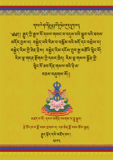 ངོ་སྤྲོད་མདོར་བསྡུས། བྱང་ཆུབ་སེམས་དཔའི་སྤྱོད་པ་ལ་འཇུག་པའི་ཕྱག་དཔེ་ འདི་ནི་༸སྐྱབས་རྗེ་ཟམ་གདོང་རིན་པོ་ཆེ་རྗེ་བཙུན་བློ་བཟང་བསྟན་འཛིན་དཔལ་བཟང་པོ་མཆོག་ནས་འདིའི་བཤད་ཁྲིད་གནང་སྐབས་དཔར་མ་མི་འདྲ་བ་ཁག་བདུན་ལ་མཚུངས་བསྡུར་ལེགས་བྱས་ཀྱིས་རྣམ་གྲོལ་དོན་དུ་གཉེར་བའི་དད་ལྡན་ཆོས་ཞུ་བ་རྣམས་ཀྱི་སླད་དུ་དཔར་སྐྲུན་ཞུས་པ་ཡིན།